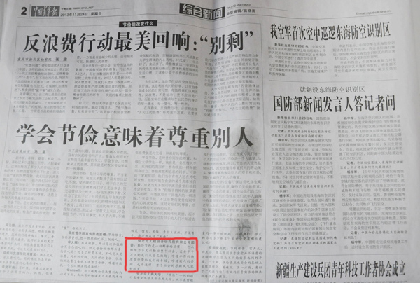 11月24日,公司團委微博內容登上共青團中央主辦刊物《中國青年報》二版“節儉能改變什么”一文,展示了公司青年作為兵工人勤儉節約、熱心公益事業的良好形象。